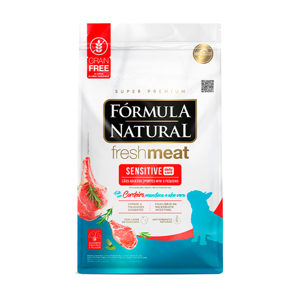 Ração Fórmula Natural Freshmeat Sensitive Cães Adultos Porte Mini e Pequeno Cordeiro 7kg