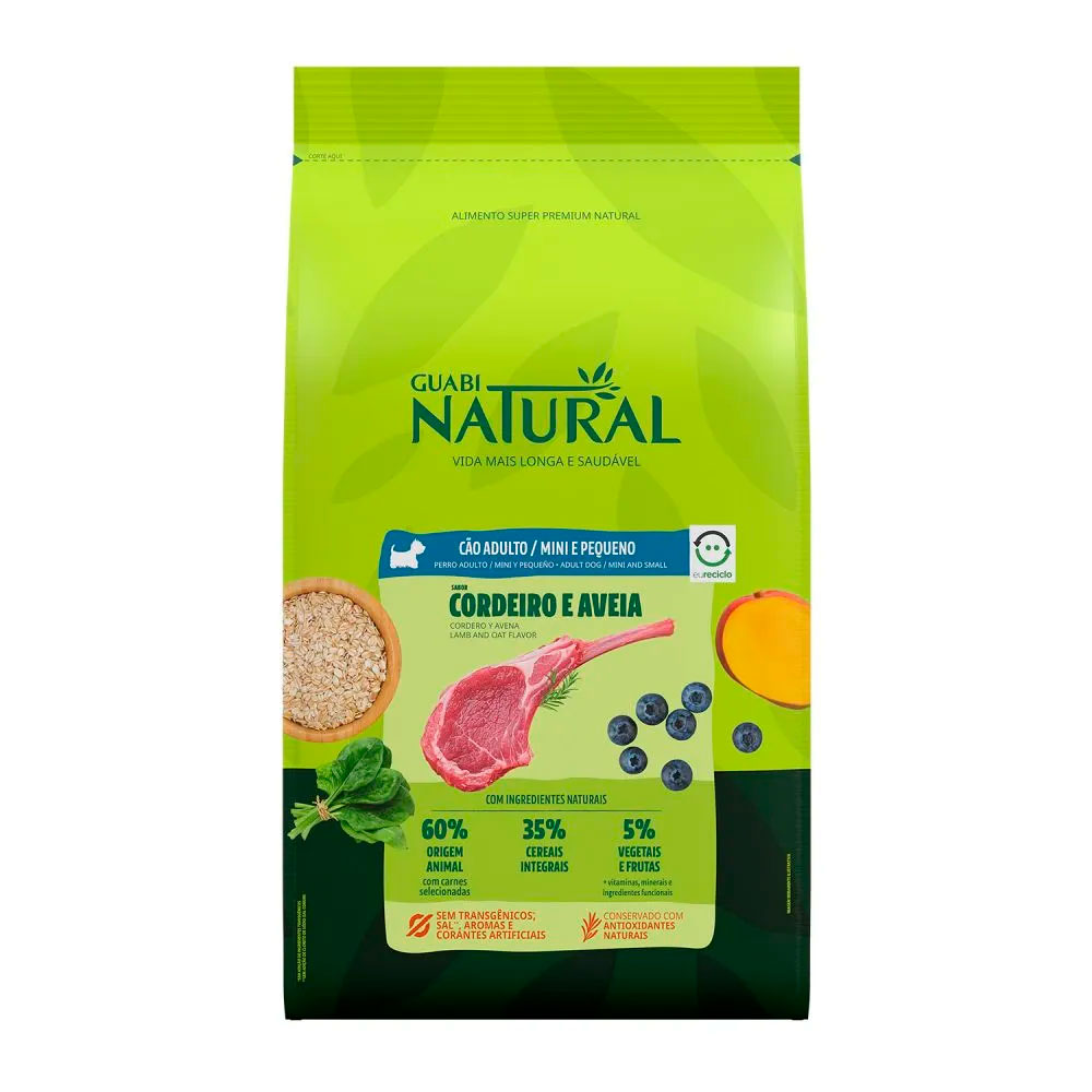 Ração Guabi Natural Cães Adultos Porte Mini e Pequeno Sabor Cordeiro e Aveia 2,5kg