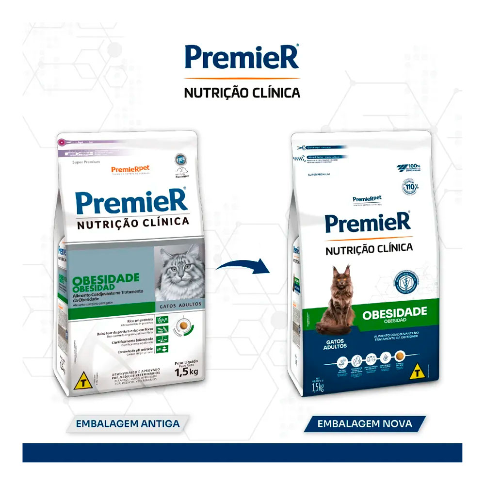 Ração Premier Nutrição Clínica Obesidade Para Gatos Adultos 1,5kg