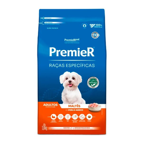 Ração Premier Raças Específicas Maltês Cães Adultos Peru e Arroz 1kg