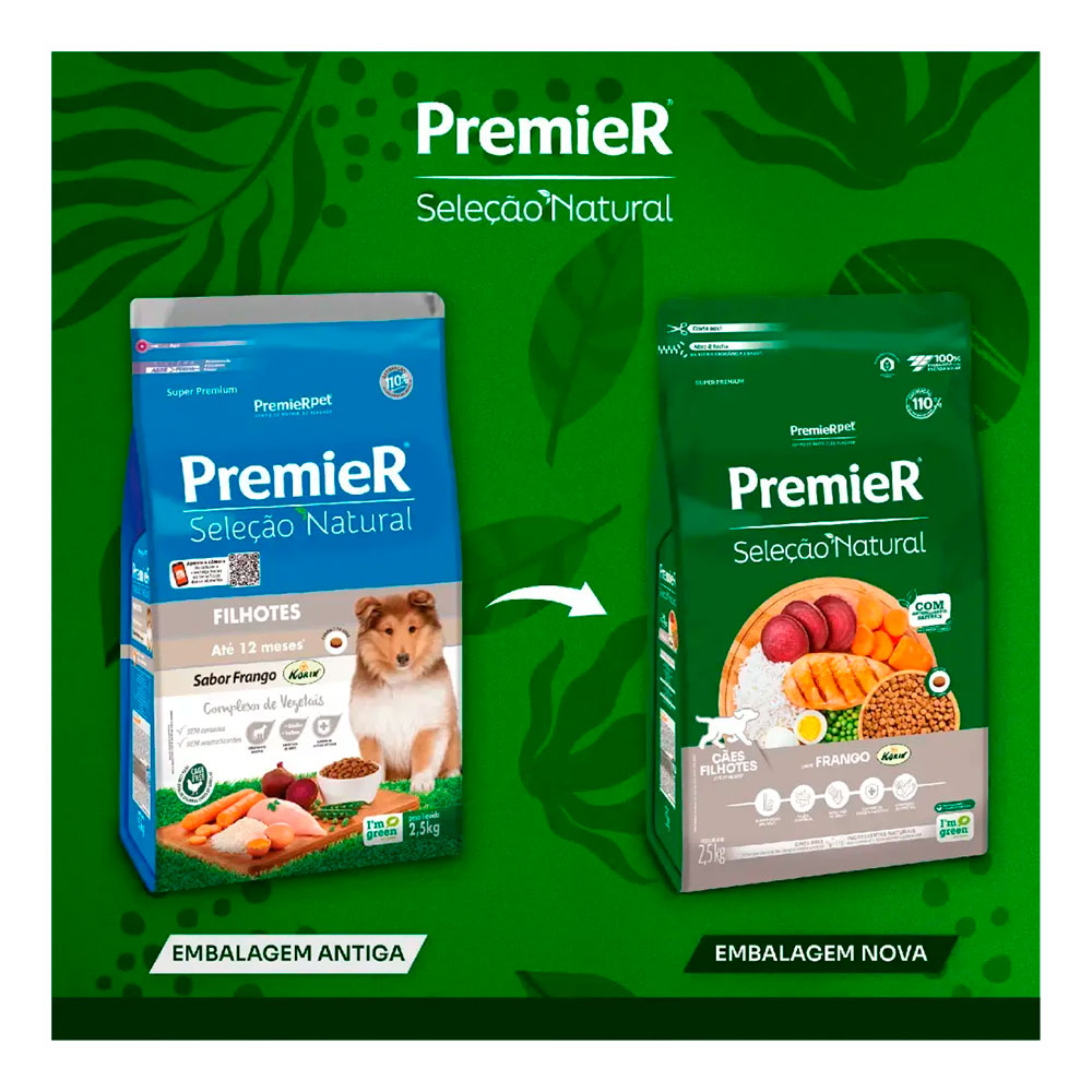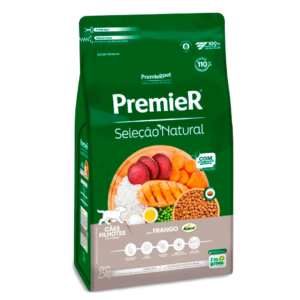 Ração Premier Seleção Natural Cães Filhotes é fonte de proteína Korin, complexo de 9 vegetais e ingredientes criteriosamente selecionados.