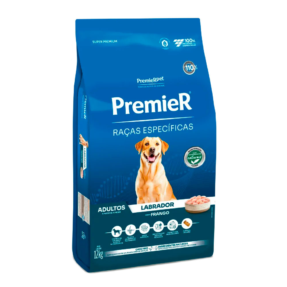 A Ração Premier Raças Específicas Labrador Adultos oferece um nível moderado de calorias que auxilie no controle do seu peso. Com ingredientes nobres e de alta tecnologia, oferece benefícios exclusivos que visam minimizar os principais problemas de saúde da raça, auxiliando para o pleno desenvolvimento de suas características típicas desejáveis e ajudando a manter sua saúde e beleza.