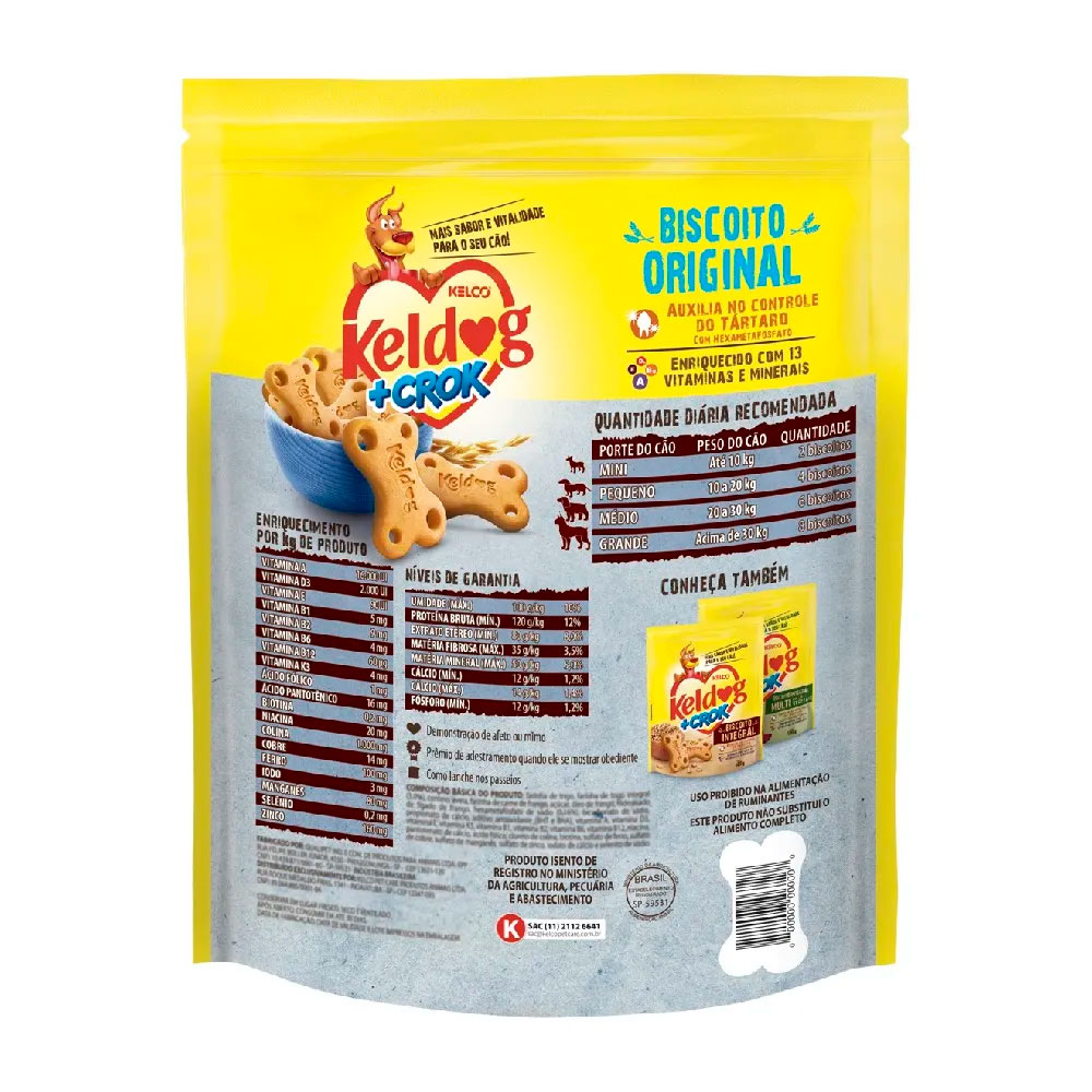 O Biscoito Original +Crock Keldog é um petisco ideal para o seu cãozinho! Além de ser uma ótima forma de carinho, é um petisco enriquecido com 13 vitaminas e minerais.