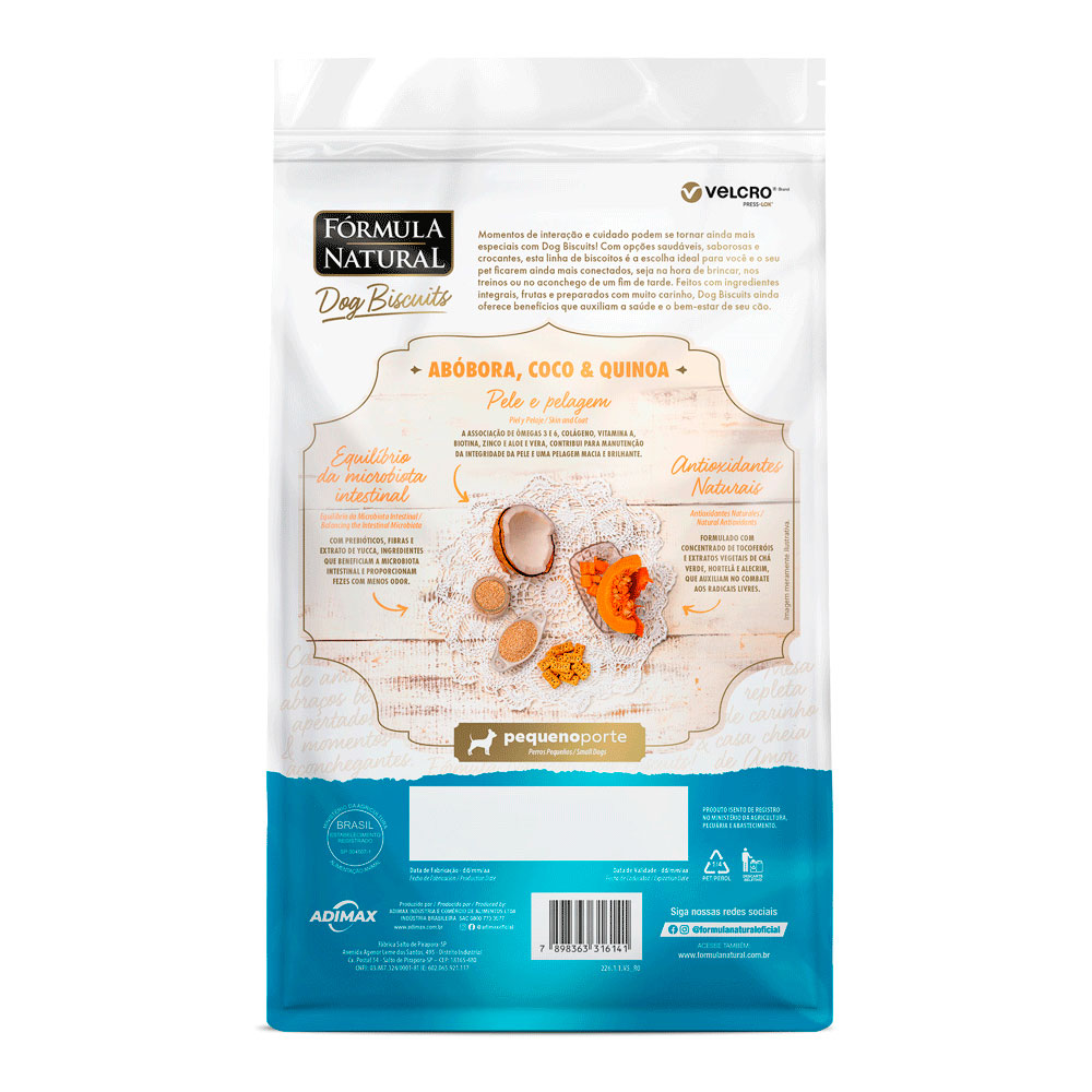O Dog Biscuits Fórmula Natural Abóbora é um petisco crocante e saboroso, especialmente desenvolvido para cães adultos de porte mini e pequeno. Com ingredientes de alta qualidade e formulação natural, este biscoito é perfeito para ser oferecido como agrado diário, recompensa no adestramento ou simplesmente um mimo saudável.