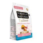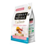 Farinha de trigo integral, farinha de trigo, farelo de trigo, banana (2%), batata-doce (2%), grão de linhaça (1%), grão de quinoa, óleo de aves, óleo de canola, subproduto da extração da L-cistina, cloreto de sódio, farinha de algas Schizochytrium sp., extrato de levedura, hexametafosfato de sódio, parede celular de levedura, inulina, extrato de yucca (0,04%), sulfato de condroitina (0,01%), colágeno hidrolisado (0,03%), vitaminas (A, D3, E, K3, B1, B2, B5, B6, B12 , C, niacina, ácido fólico, biotina, cloreto de colina), minerais (sulfato de ferro, sulfato de manganês, sulfato de zinco, iodato de cálcio, selenito de sódio, sulfato de cobre, proteinato de zinco, levedura enriquecida com selênio, proteinato de manganês) metionina, glicina, lisina, ácido propiônico, extratos vegetais (chá verde, hortelã e alecrim) cúrcuma (0,01%), concentrado de tocoferol (antioxidante natural) (0,001%).