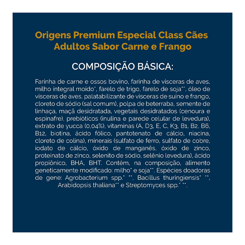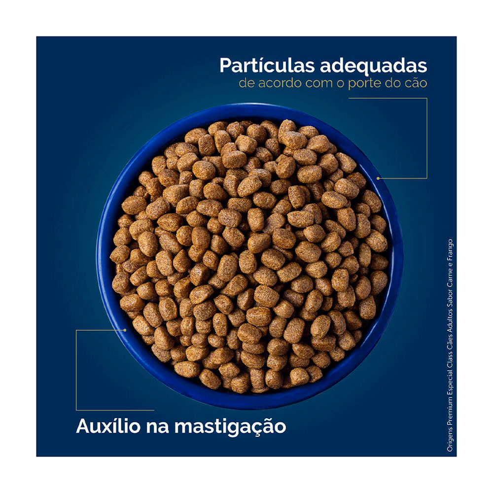 A Ração Seca Origens Premium Especial Class Carne e Frango para Cães Adultos é uma linha de alimentos Premium Especial que oferece a melhor nutrição para seu pet, aumentando a absorção e aproveitamento dos nutrientes, além de proporcionar aos cães adultos o nível ideal de vitaminas, probióticos e fribras, que ajudam no desenvolvimento que eles necessitam para uma vida longa e saudável.