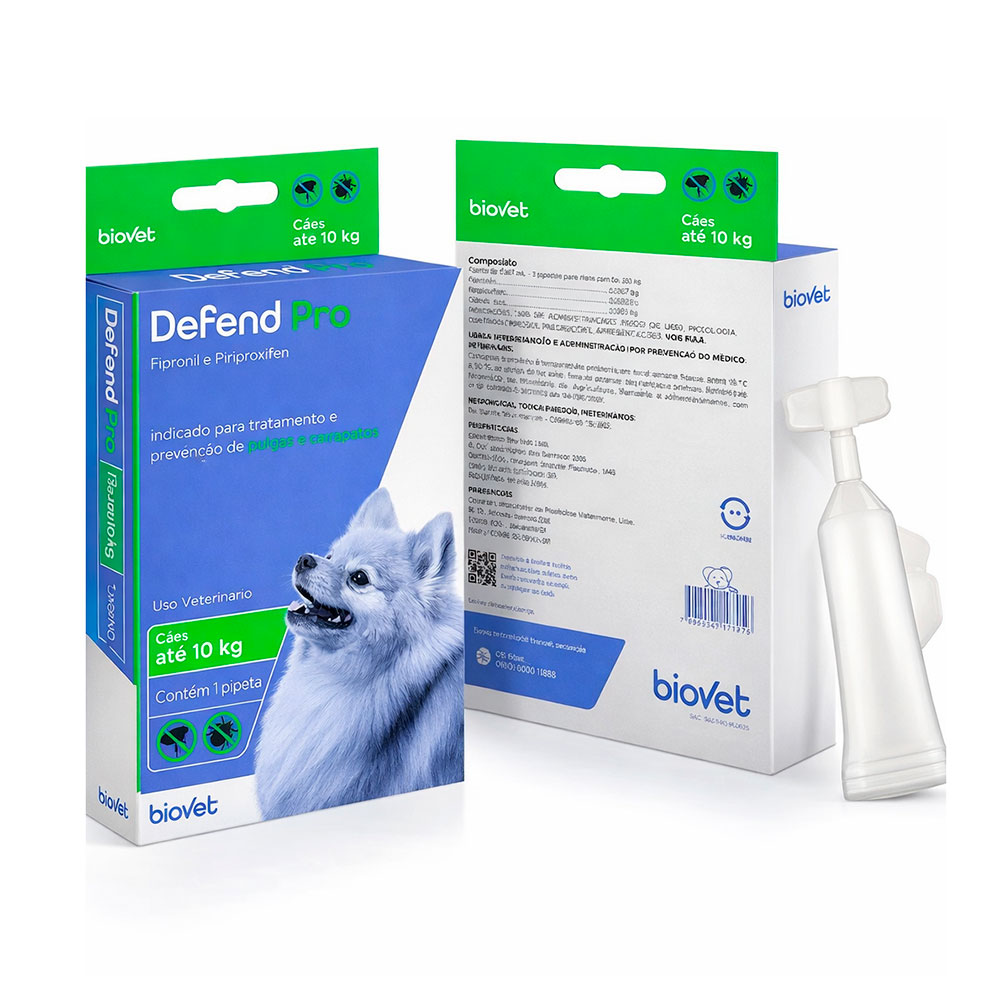 O Defend Pro Biovet para Cães até 10kg é um antipulgas e carrapaticida de uso tópico, desenvolvido para o tratamento e prevenção de infestações por pulgas e carrapatos em cães de pequeno porte.