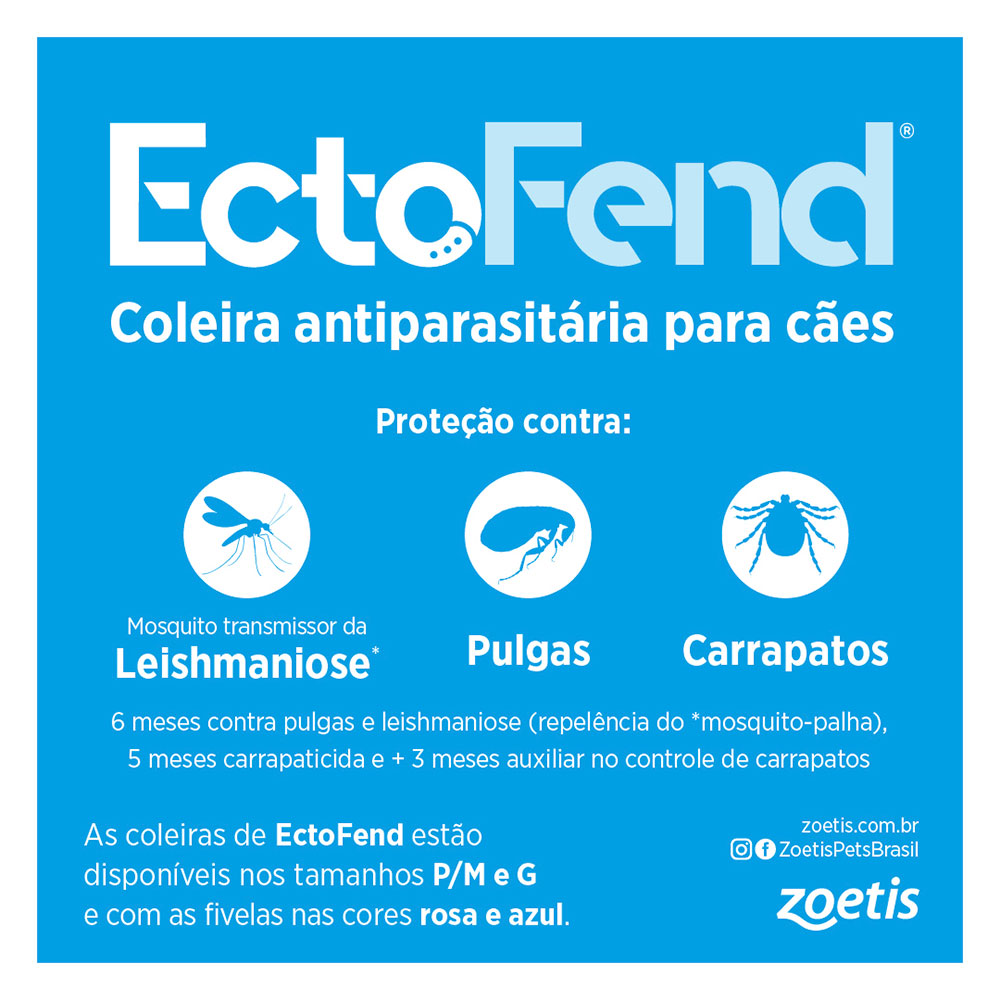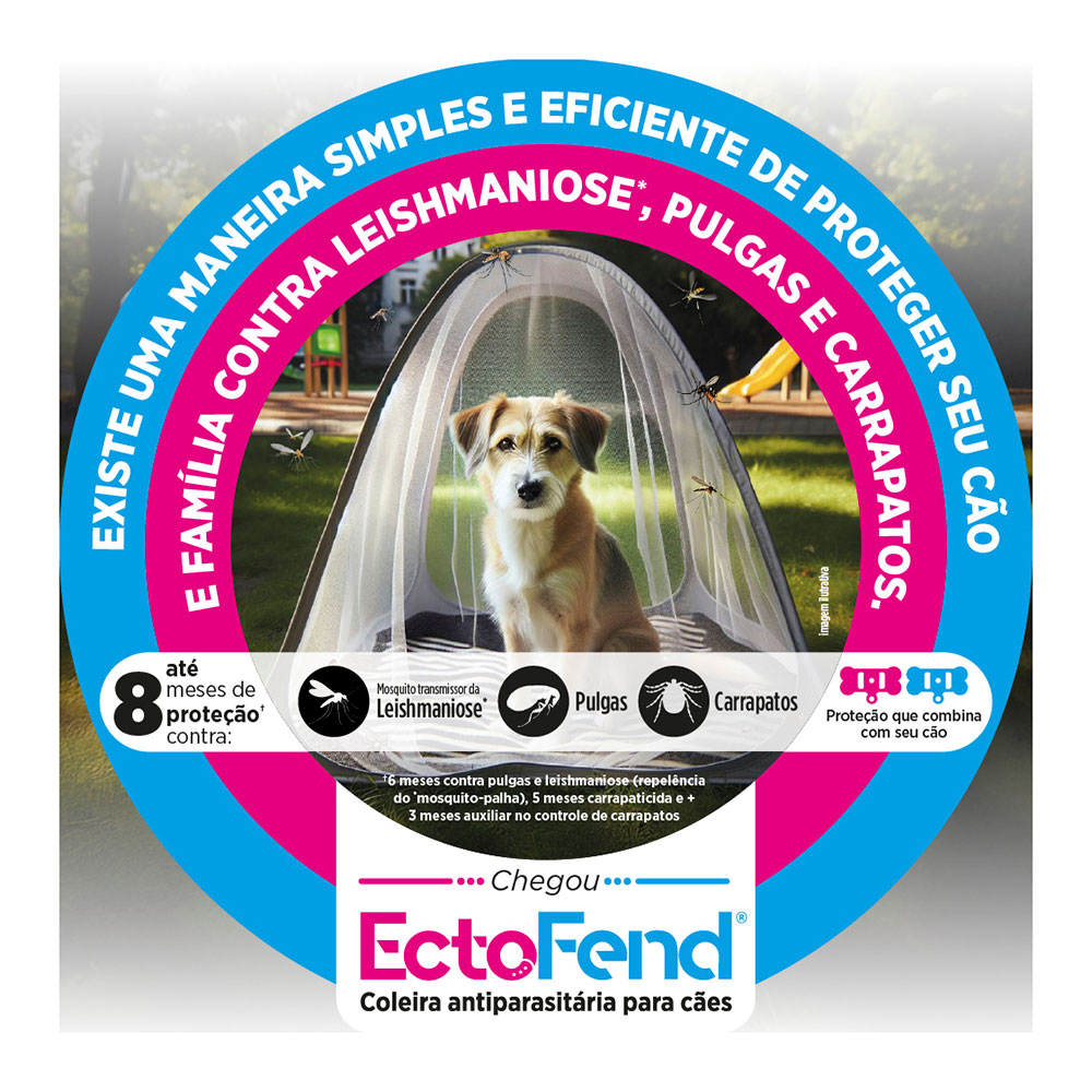 EctoFend é uma coleira antiparasitária de uso veterinário com ação repelente contra o mosquito-palha (Lutzomyia longipalpis), vetor da leishmaniose visceral canina. Também possui ação ectoparasiticidas oferecendo controle eficaz de pulgas (Ctenocephalides felis), carrapatos (Rhipicephalus sanguineus).