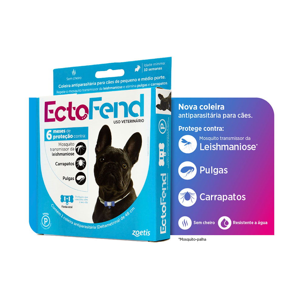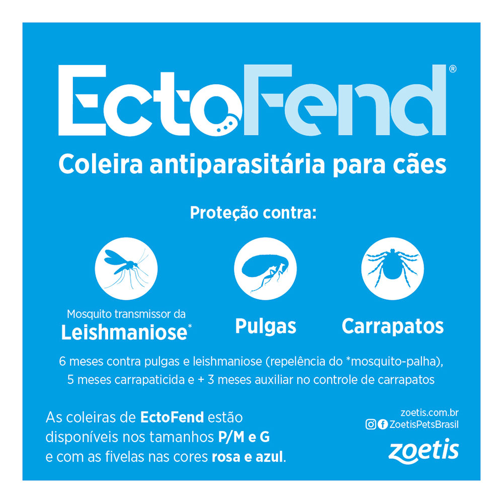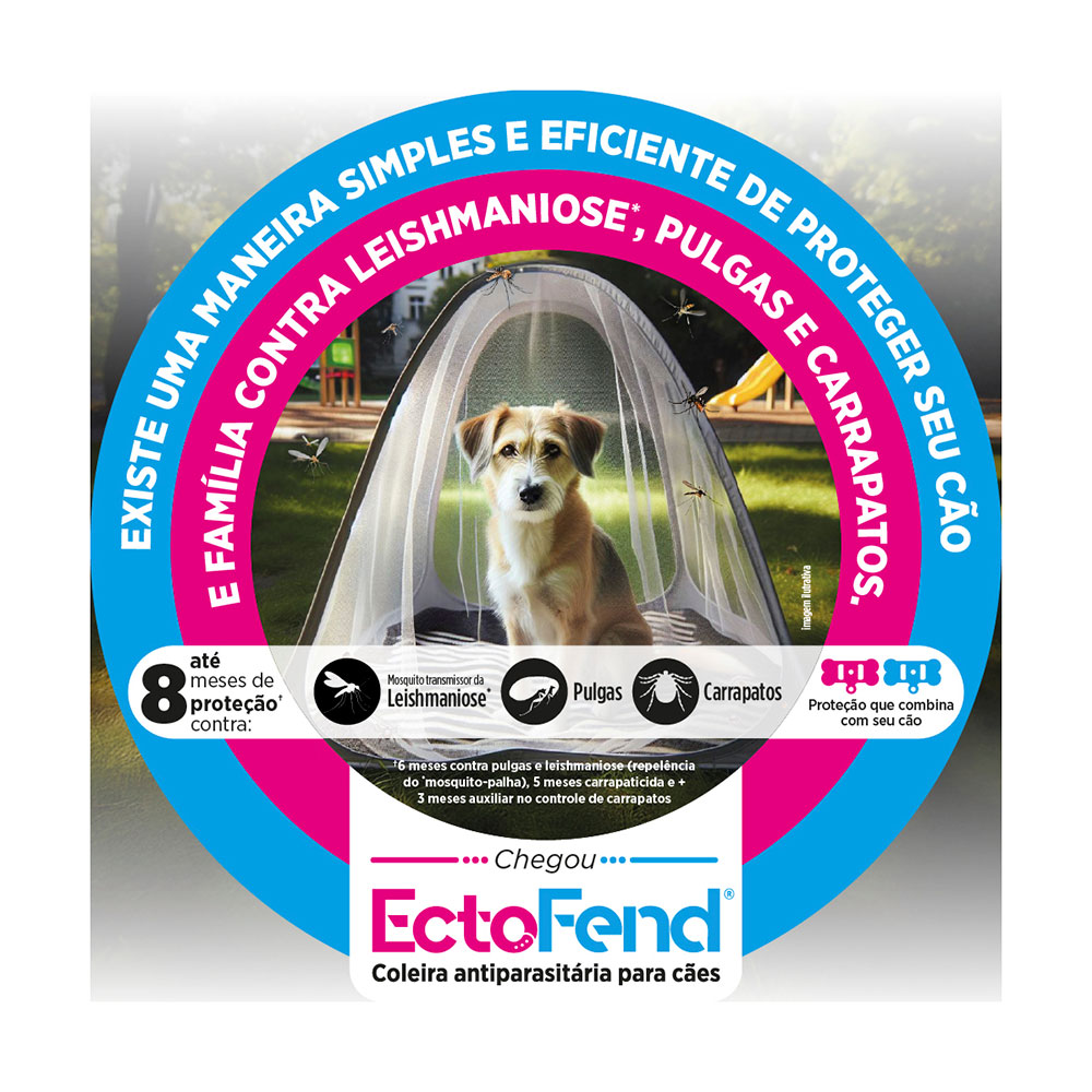EctoFend é uma coleira antiparasitária de uso veterinário com ação repelente contra o mosquito-palha (Lutzomyia longipalpis), vetor da leishmaniose visceral canina. Também possui ação ectoparasiticidas oferecendo controle eficaz de pulgas (Ctenocephalides felis), carrapatos (Rhipicephalus sanguineus).