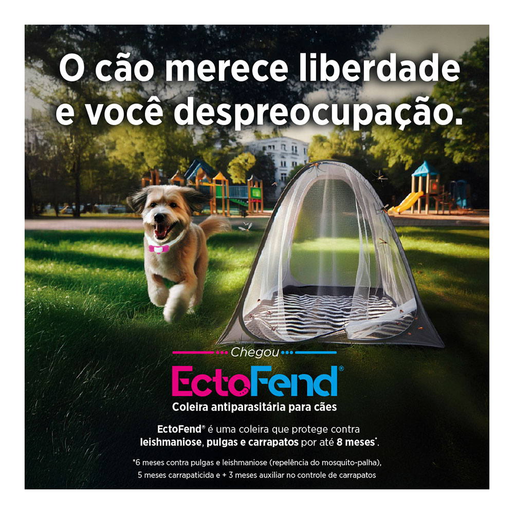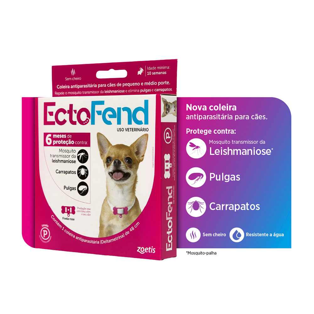 EctoFend é uma coleira antiparasitária de uso veterinário com ação repelente contra o mosquito-palha (Lutzomyia longipalpis), vetor da leishmaniose visceral canina. Também possui ação ectoparasiticidas oferecendo controle eficaz de pulgas (Ctenocephalides felis), carrapatos (Rhipicephalus sanguineus).