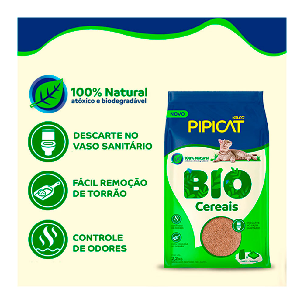 O Granulado Higiênico Pipicat Bio Cereais é ideal para quem busca um produto eficiente, sustentável e seguro para o seu gato. Produzido com matérias-primas naturais e biodegradáveis, ele oferece alta absorção e controle de odores, garantindo um ambiente mais limpo e agradável para o felino.