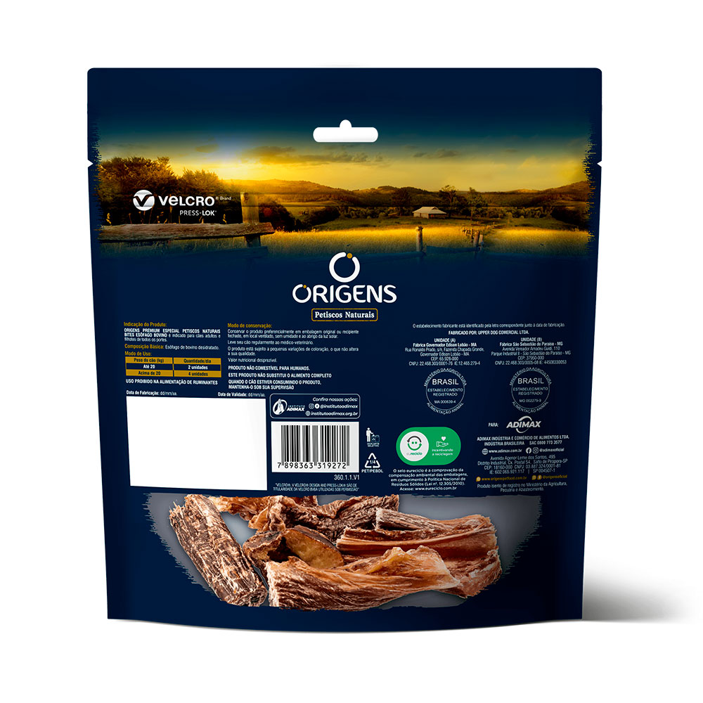 O Esôfago Bovino da Origens tem sabor irresistível, uma fonte de proteína de alta qualidade que contribui para a saúde muscular e energia do seu cãozinho. Com o esôfago bovino, você pode proporcionar um petisco que seu pet ama, ao mesmo tempo em que cuida da sua saúde.