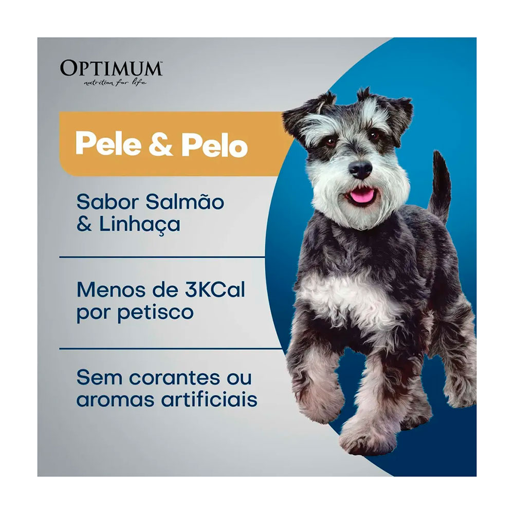 O Petisco Para Cachorro Adulto OPTIMUM Pele & Pelo possui nutrientes que agem tanto na aparência quanto no fortalecimento da pele e da pelagem, promovendo mais saúde, maciez e brilho.