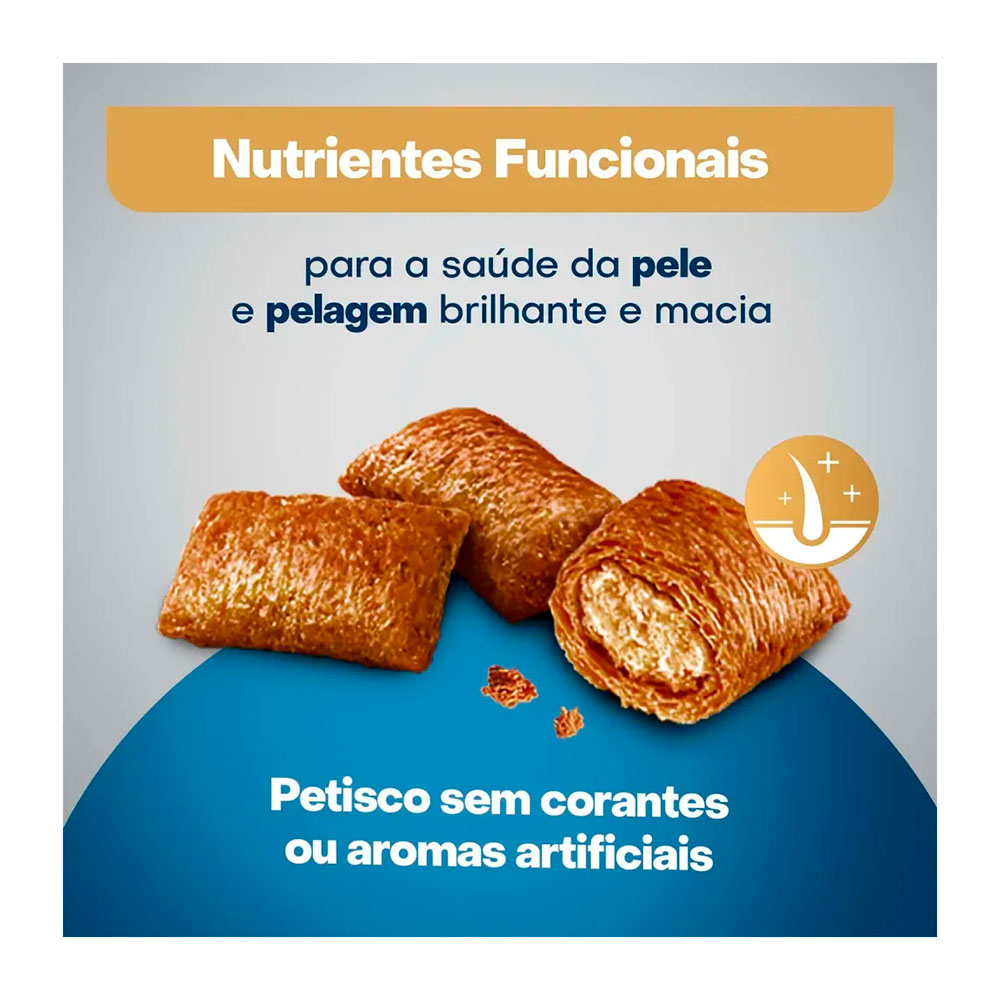 O snack foi desenvolvido especialmente para complementar a alimentação diária dos cães adultos, contribuindo para a saúde da pele e a beleza da pelagem. Com sabor irresistível de salmão, é ideal para agradar até os paladares mais exigentes.