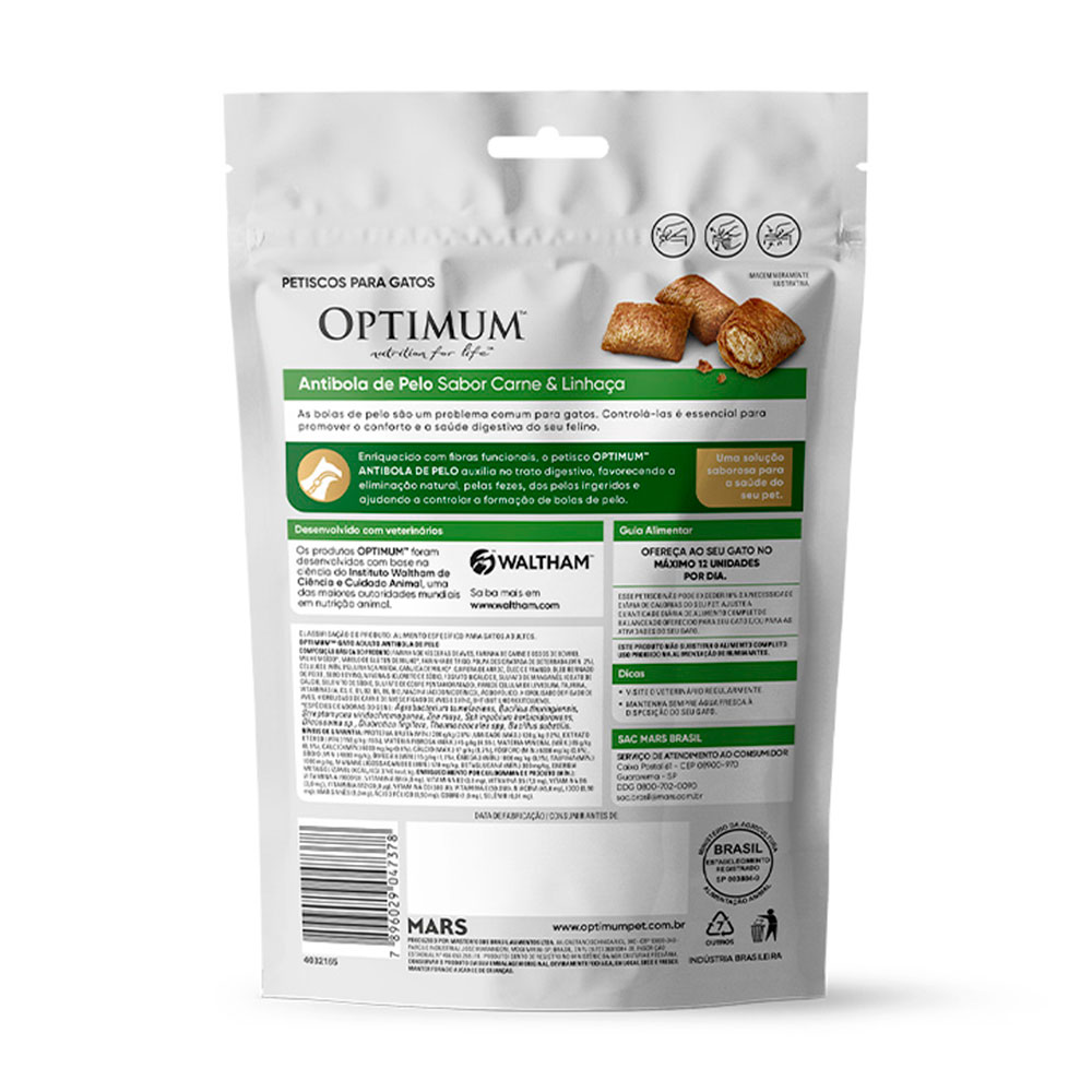 O Petisco Para Gato Adulto OPTIMUM Antibola de Pelo controla um problema comum entre os felinos: a formação de bolas de pelo.
