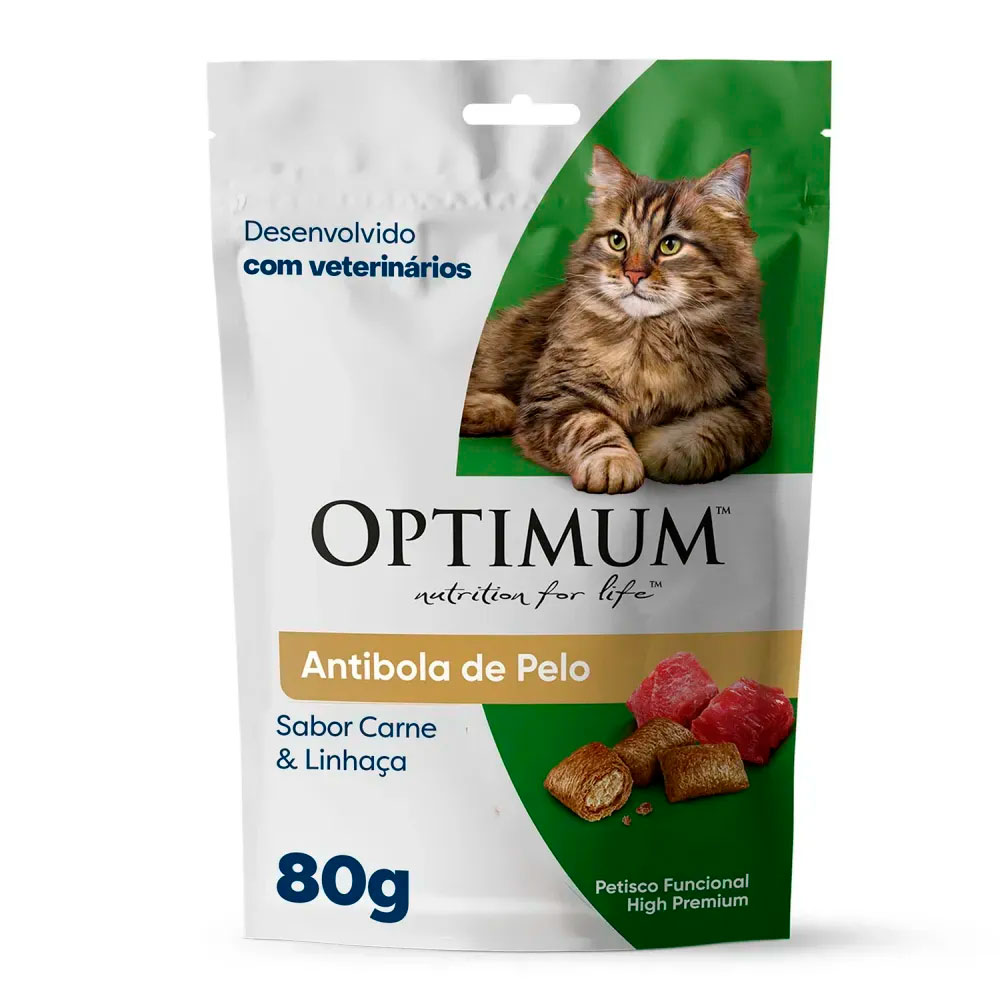Petisco Optimum Para Gatos Adultos Anti Bola de Pelo Sabor Carne 80g