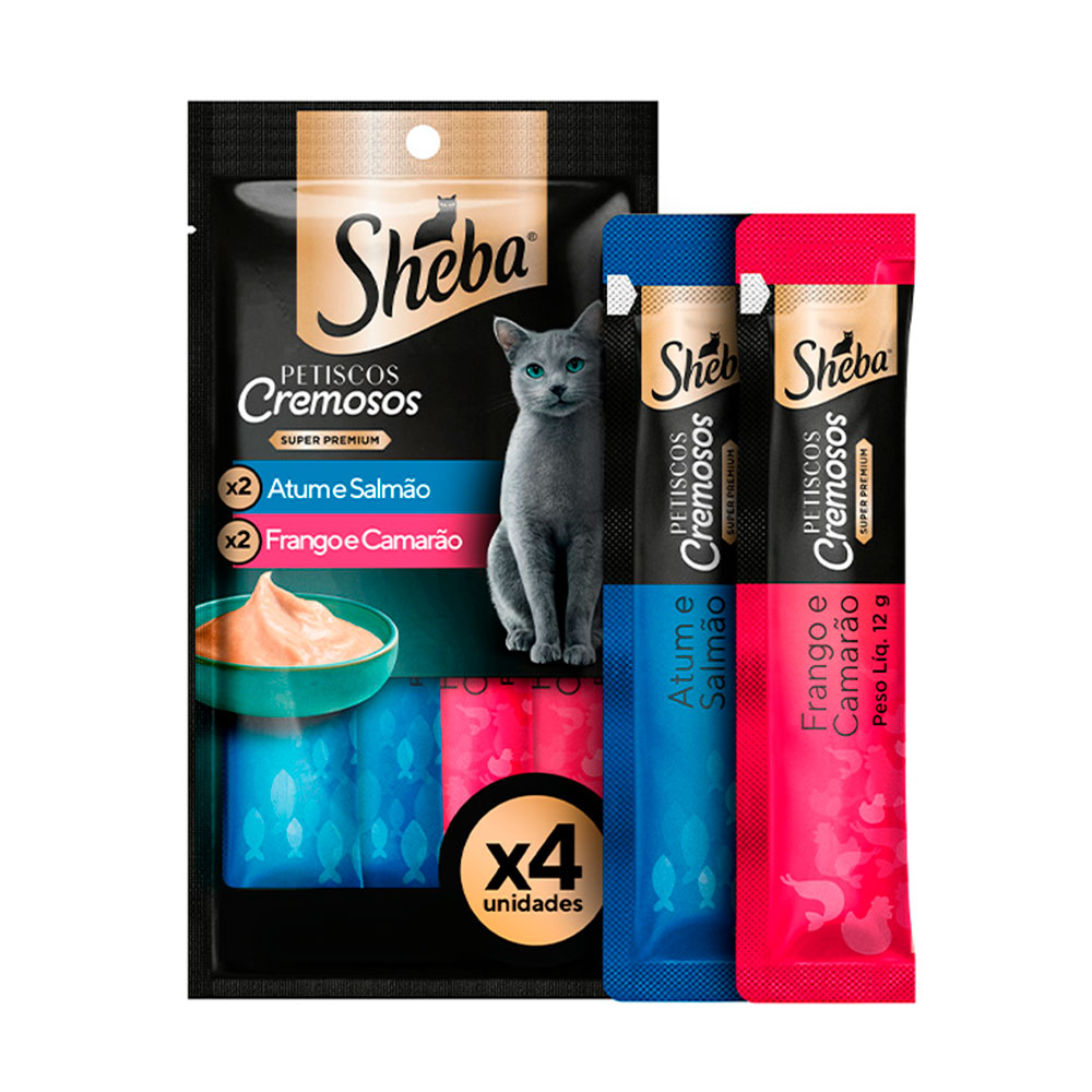 Petisco Sheba Cremoso Para Gatos Sabor Atum e Salmão & Frango e Camarão 4 Unidades