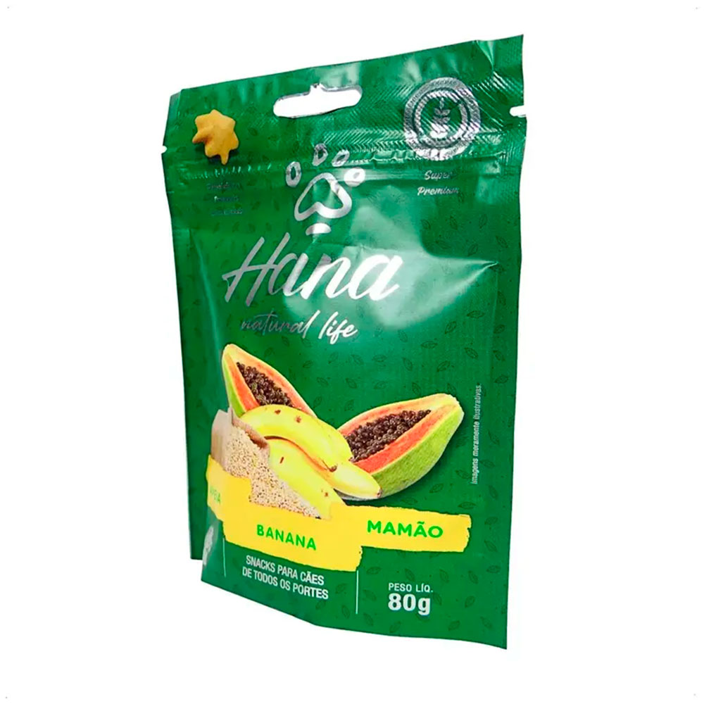 Hana Natural Life é uma opção saborosa e funcional para cães adultos de todos os portes. A proposta combina ingredientes naturais como banana, aveia e mamão, com fibras para saciedade, vitaminas e minerais para apoio nutricional, além de ser conservado naturalmente com extrato de alecrim.