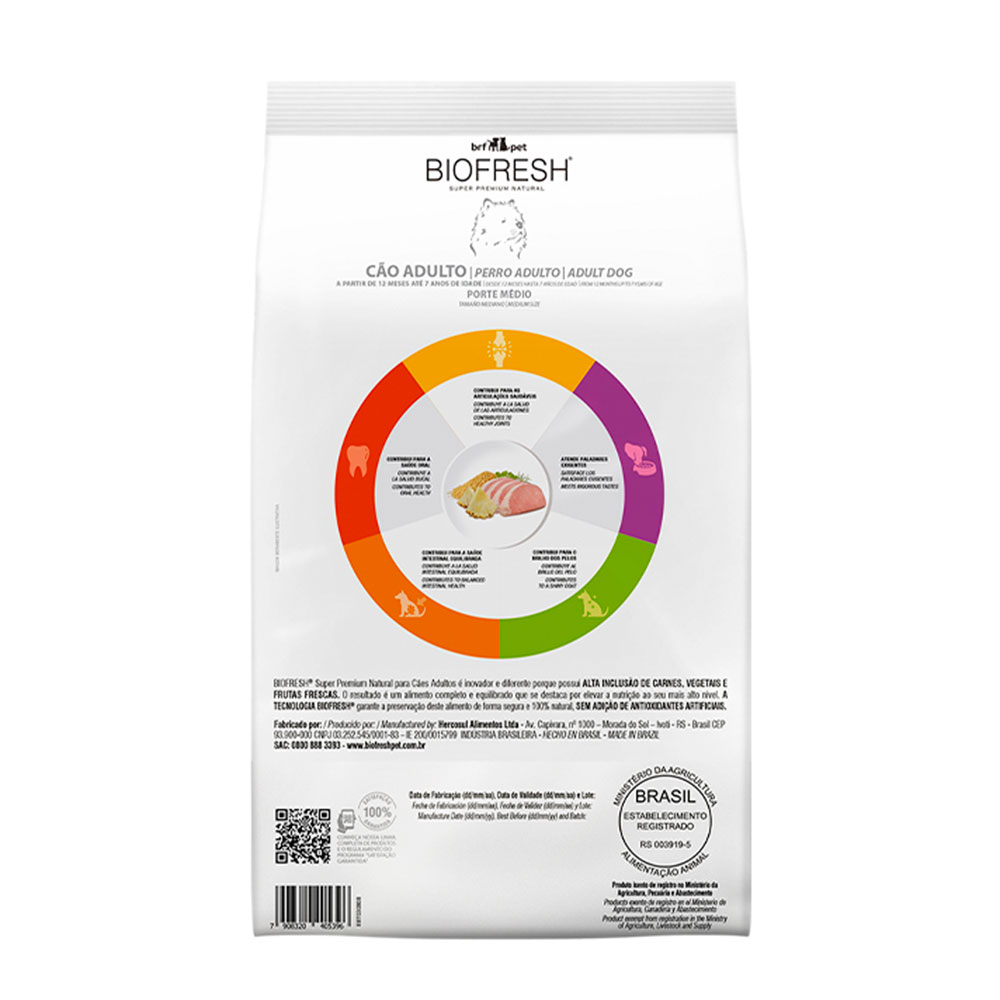 Biofresh Super Premium para Cães Porte Médio é desenvolvida com ingredientes frescos de verdade, sem a adição de transgênicos, aromatizantes, corantes e conservantes artificiais, a linha proporciona uma nutrição completa, equilibrada e mais saudável para os pets.