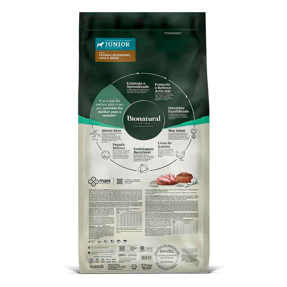 Ração Bionatural Filhotes possui condroitina e glucosamina, que são essenciais para o reforço e proteção articular, promovem uma articulação saudável e maior mobilidade para raças pequenas. Enriquecida com prebióticos e probióticos, que ajudam a manter a flora intestinal saudável.