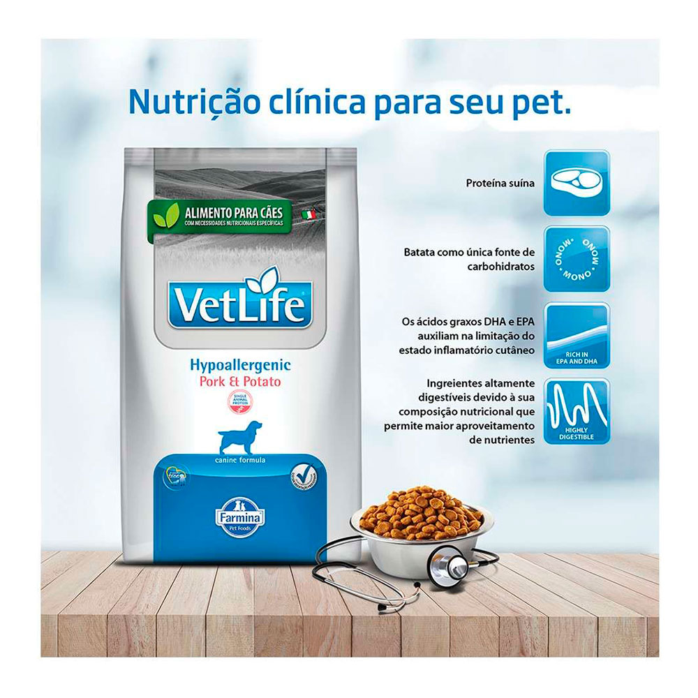 A Hipoalergênica Vet Life, agora na versão porco com batata, é um alimento com conservantes 100% naturais que ajudam na alimentação e tratamento de cães com algum nível de intolerância alimentar.