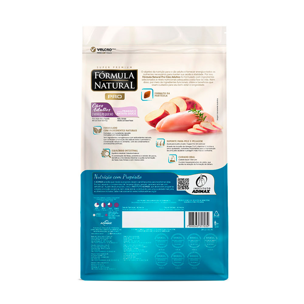A Ração Fórmula Natural Pró para Cães Adultos de Porte Mini e Pequeno é um alimento Super Premium desenvolvido por médicos-veterinários para oferecer nutrição completa, equilibrada e de alta qualidade. Com ingredientes selecionados e naturais, é ideal para manter a saúde, vitalidade e longevidade dos cães adultos de pequeno porte.