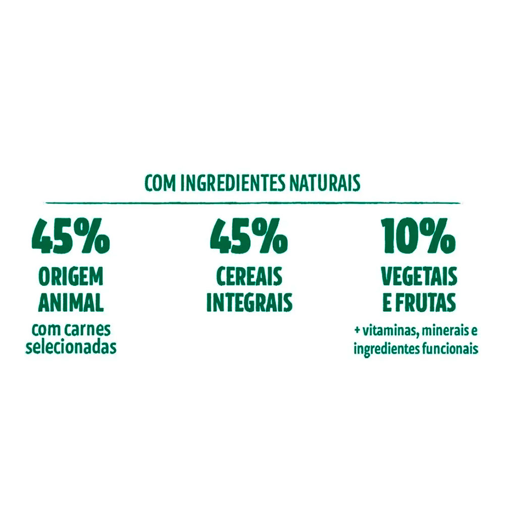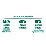 Auxilia na manutenção da saúde da pelagem e da pele, com ação antioxidante promove uma vida longa e saudável. Possui fibras, prebióticos e cereais auxiliam no bom funcionamento do intestino e reduz a formação de tártaro.