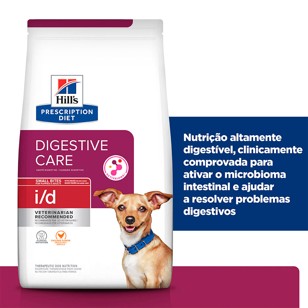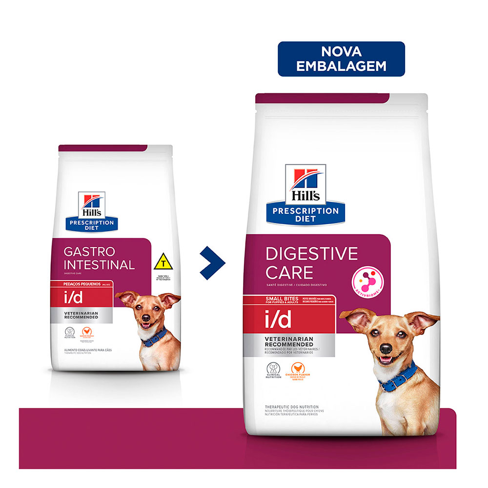 A Ração Hill’s I/D Gastrointestinal Pedaços Pequenos um alimento desenvolvido para os cães de portes pequenos que têm dificuldades ou sensibilidades gástricas.