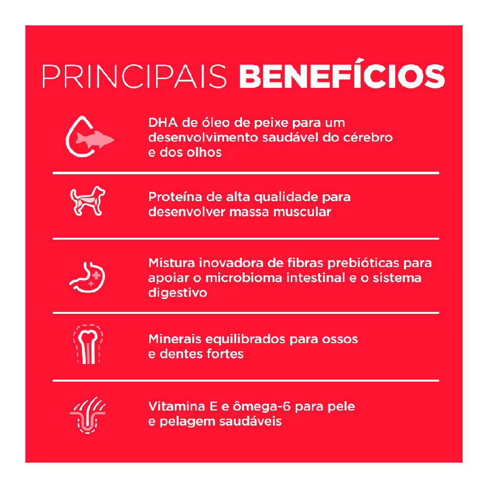 Hill’s para Filhotes contém uma mistura precisa de ingredientes de alta qualidade, incluindo proteínas, vitaminas, minerais e antioxidantes essenciais para promover o desenvolvimento saudável, a força muscular e a imunidade robusta.