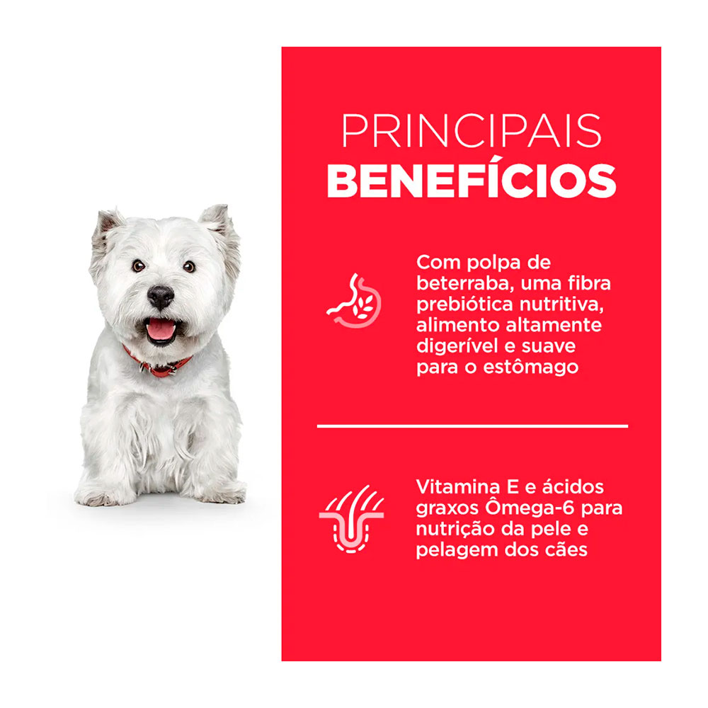 Hill’s Cães Adultos saudáveis com pele sensível de pequeno porte, proteínas de alta qualidade para uma condição corpórea ideal. Fibras de alta qualidade, ácidos graxos e antioxidantes que ajudam a manter a pele, pelagem e digestão saudáveis.