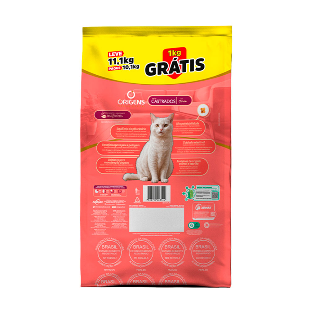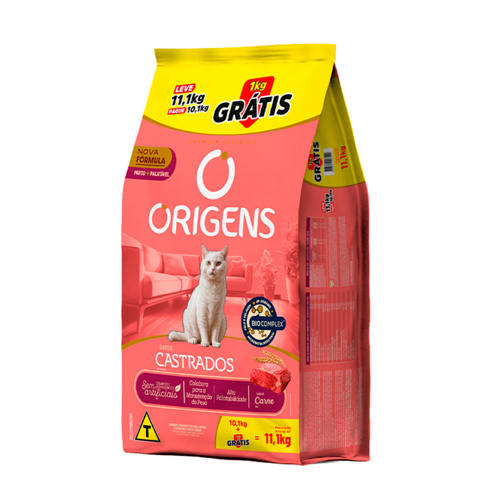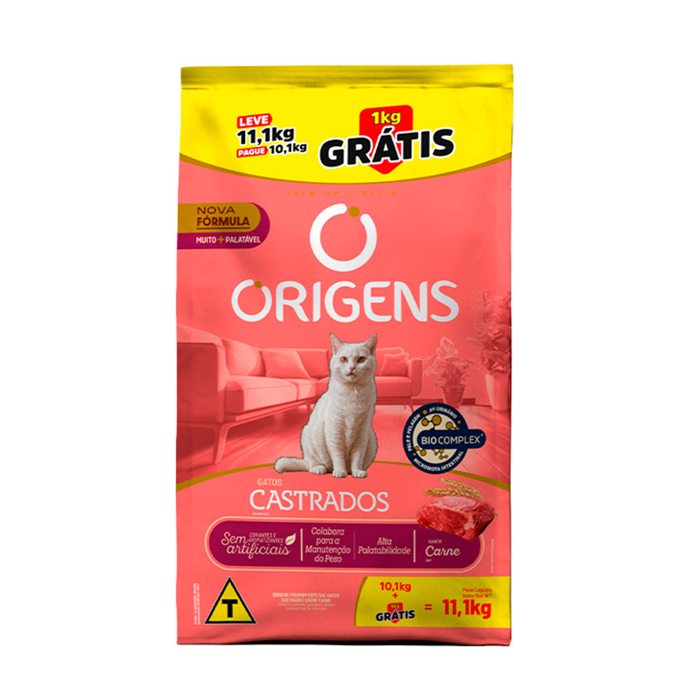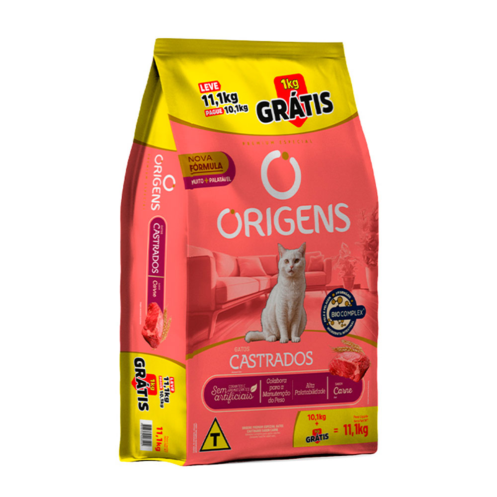 Ração Origens Para Gatos Castrados Sabor Carne Leve 11,1kg Pague 10,1kg