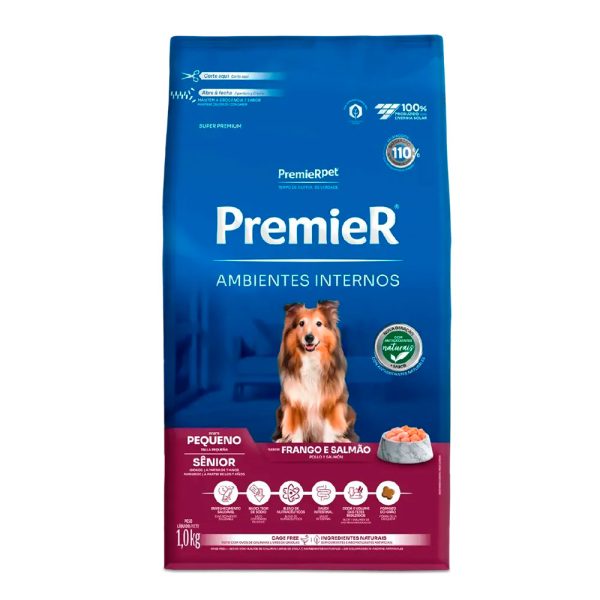 A Ração Premier Ambientes Internos Raças Pequenas Sênior é um alimento Super Premium específico para cães idosos que vivem dentro de casa.