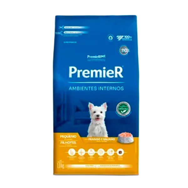 Ração Premier Ambientes Internos Cães Filhotes Porte Pequeno Frango e Salmão 1kg