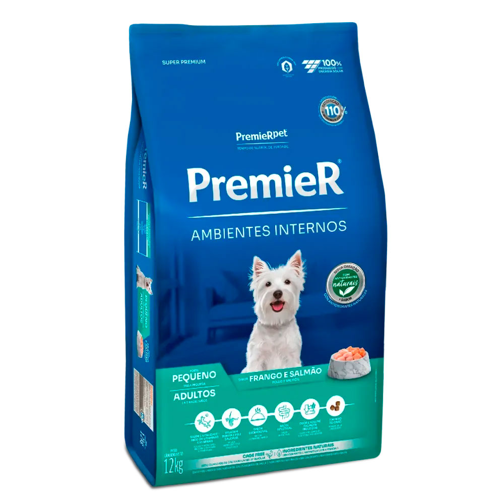 A Ração Premier Ambientes Internos Adultos Raças Pequenas foi desenvolvida para Cães Adultos de pequeno porte, possui grãos de tamanho especial para facilitar a mastigação e a digestão. Especialmente para cães que vivem dentro de casa, em contato próximo com seus donos, e necessidades nutricionais especiais.