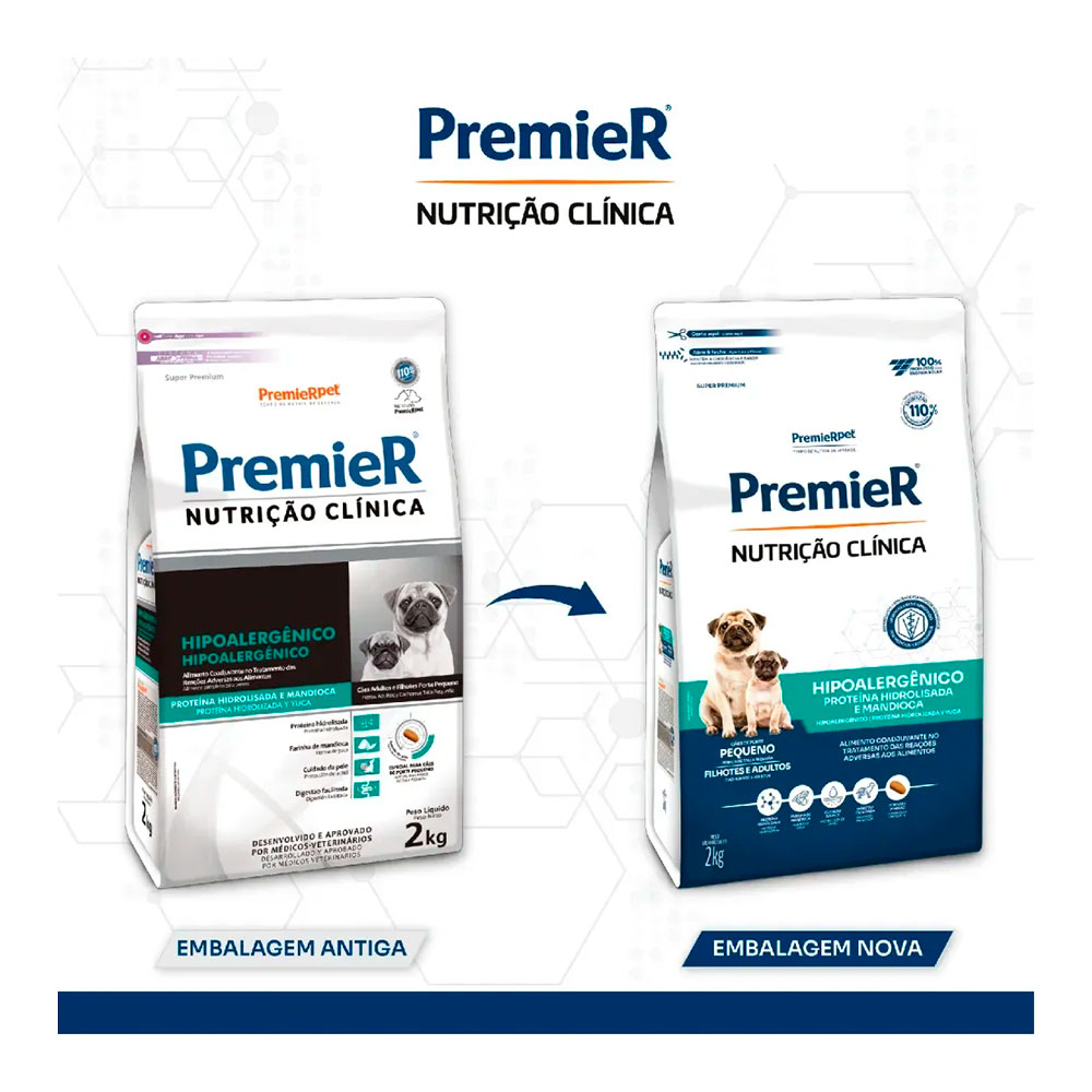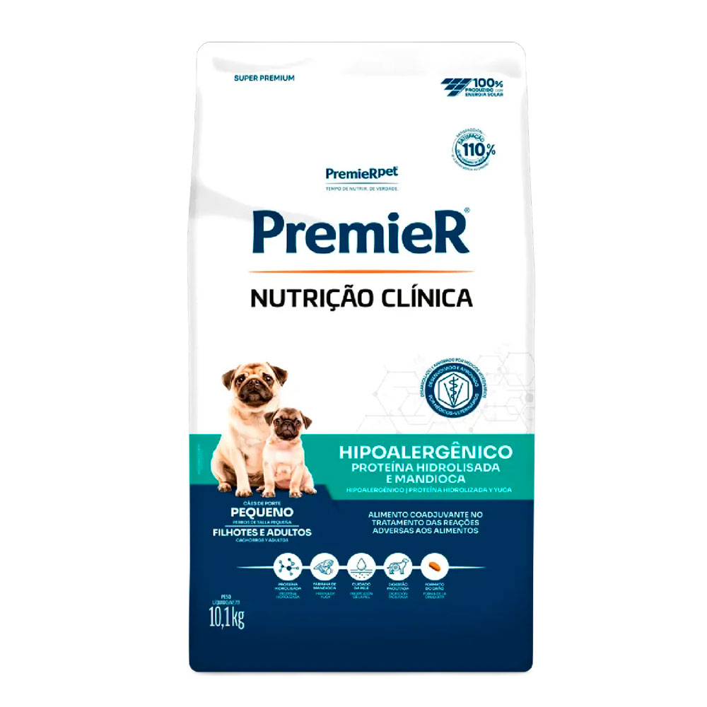 A Premier Nutrição Clínica Hipoalergênico Cães Raças Pequenas um alimento coadjuvante no tratamento das reações adversas aos alimentos sendo indicada para cães adultos e filhotes.