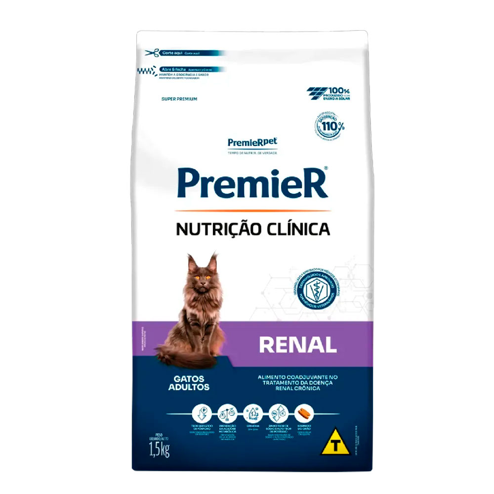 A Premier Nutrição Clínica Renal um alimento super premium para auxiliar o tratamento da doença renal crônica dos gatos. O tratamento prescrito pelo médico veterinário, algumas alterações na alimentação podem ser benéficas para pacientes com doença renal crônica.