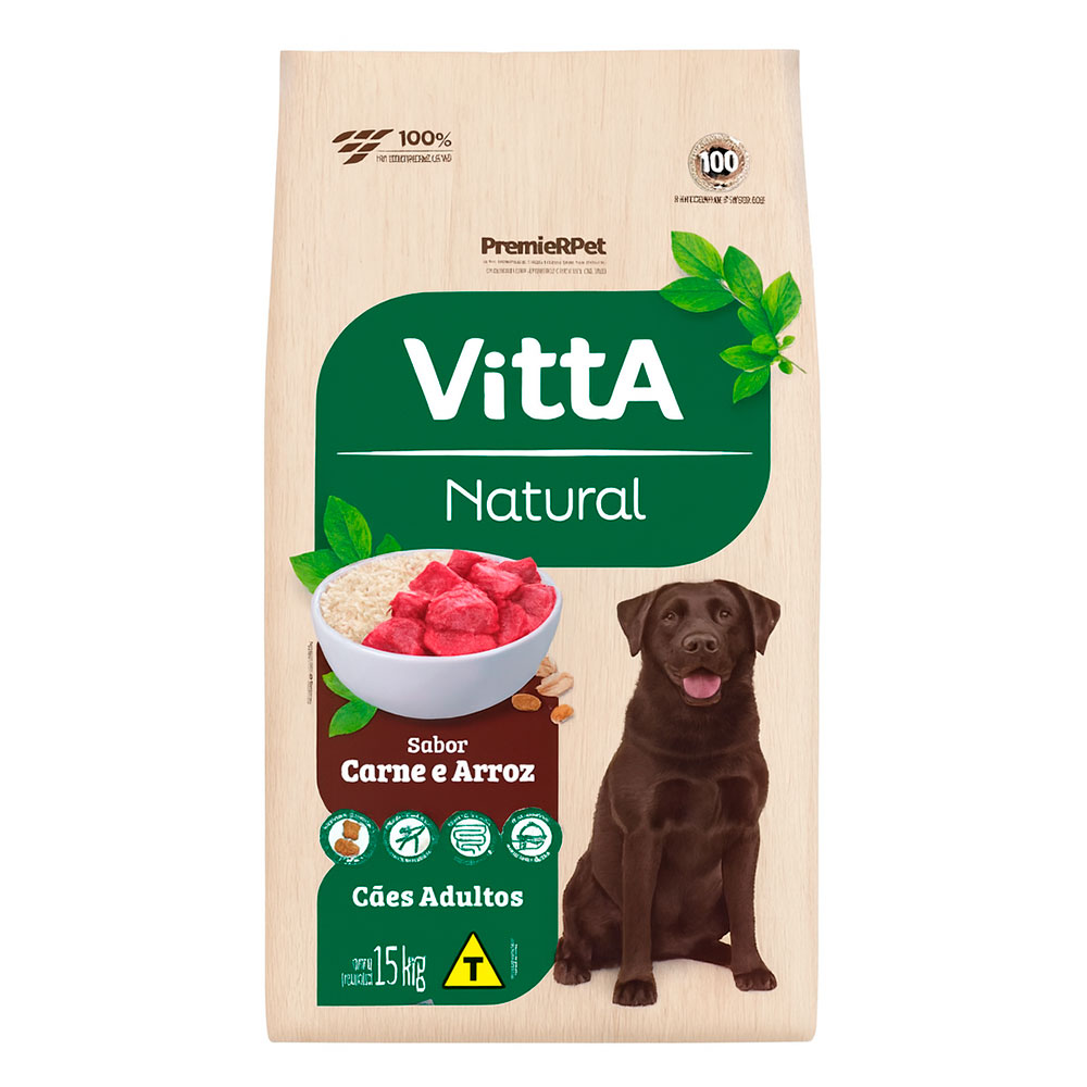A Vitta Natural Cães Seleção de Carnes & Arroz é uma combinação única de frango, uma nobre fonte de proteínas, carne bovina, fonte de proteínas de alta palatabilidade e fígado, uma importante fonte de vitaminas e mineiras.