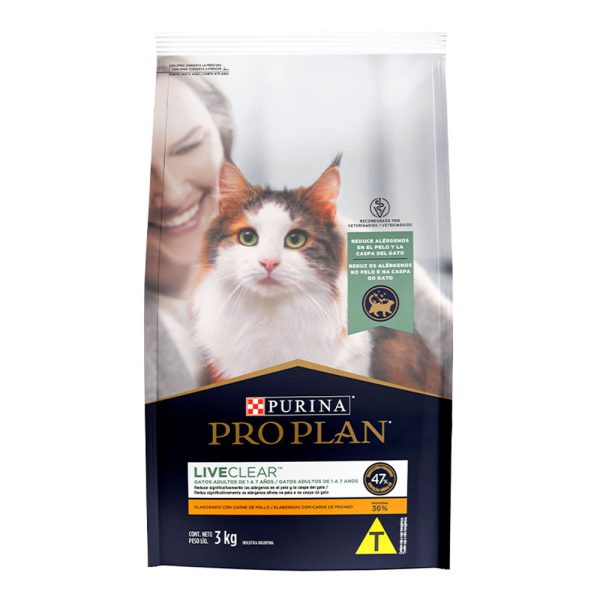 A Ração Pro Plan Live Clear é um alimento revolucionário alternativo nutricional para gatos que demonstrou reduzir os alérgenos ativos em seu pelo e caspa em média 47% a partir da terceira semana de alimentação.