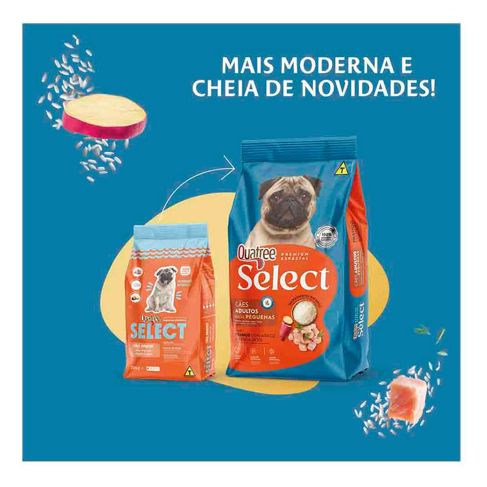 Ração Quatree Select Cães Adultos Raças Pequenas é um alimento Premium Special com conservantes 100% naturais e livre de transgênicos, garantindo fácil digestão e absorção dos nutrientes.
