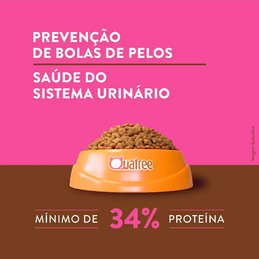 Quatree Supreme Gatos Adultos possui Ômega 3 e 6 que contribuem para a saúde da pele e pelagem. Além disso, contém fibras especiais que contribuem para a eliminação de bolas de pelos. Sem contar que é ótimo para a saúde do sistema urinário, contém controle de pH e minerais balanceados. Com alta digestibilidade por causa das fibras naturais: prebióticos (MOS e FOS), polpa de beterraba e extrato de yucca.