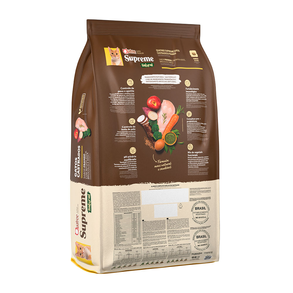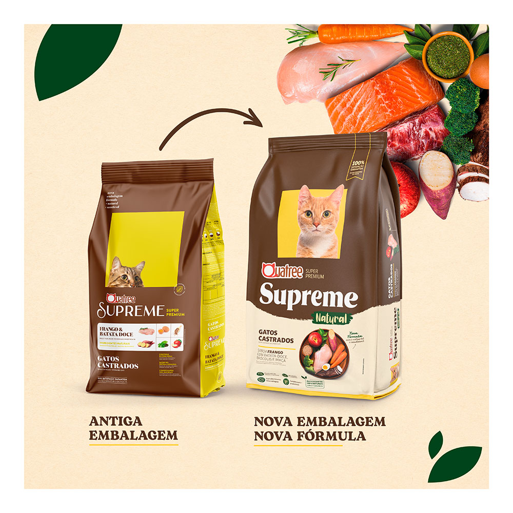 Ração Quatree Supreme Gatos Castrados Frango é um alimento Super Premium com conservantes 100% naturais e livre de transgênicos, garantindo fácil digestão e absorção dos nutrientes.