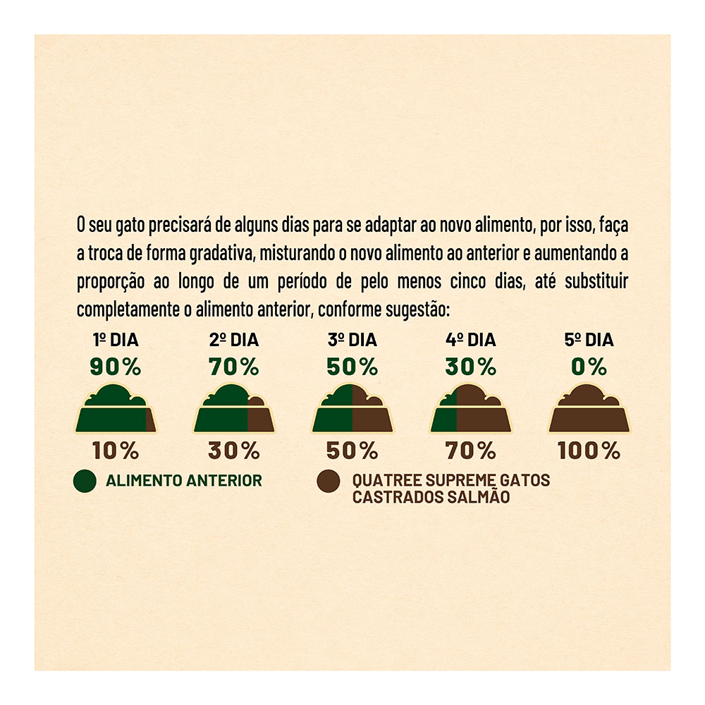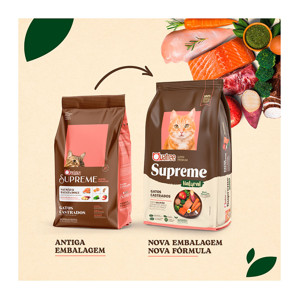 Ração Quatree Supreme Gatos Castrados Salmão é um alimento Super Premium formulado conservantes 100% naturais e livre de transgênicos, garantindo fácil digestão e absorção dos nutrientes.