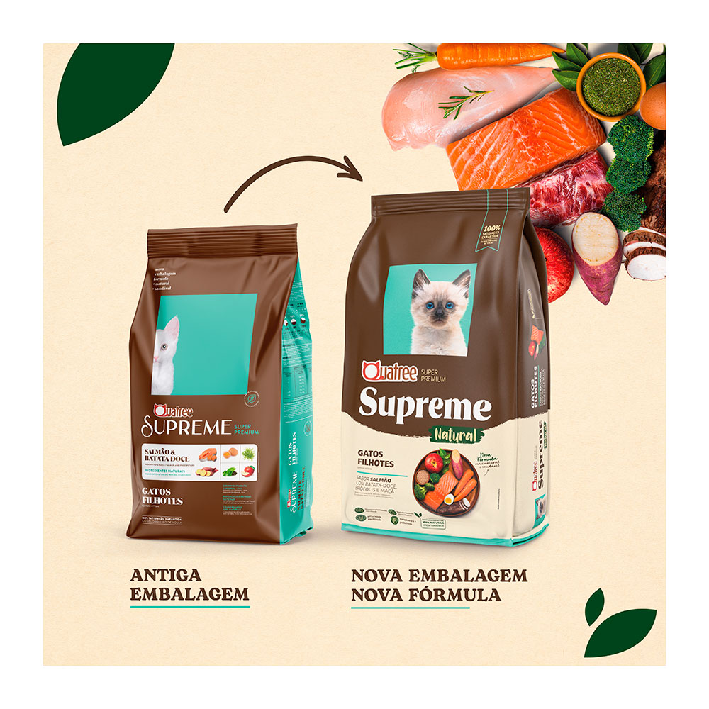 Superior na sua formulação e incomparável no sabor, Quatree Supreme proporciona uma vida mais saudável e alegre para o seu gatinho.