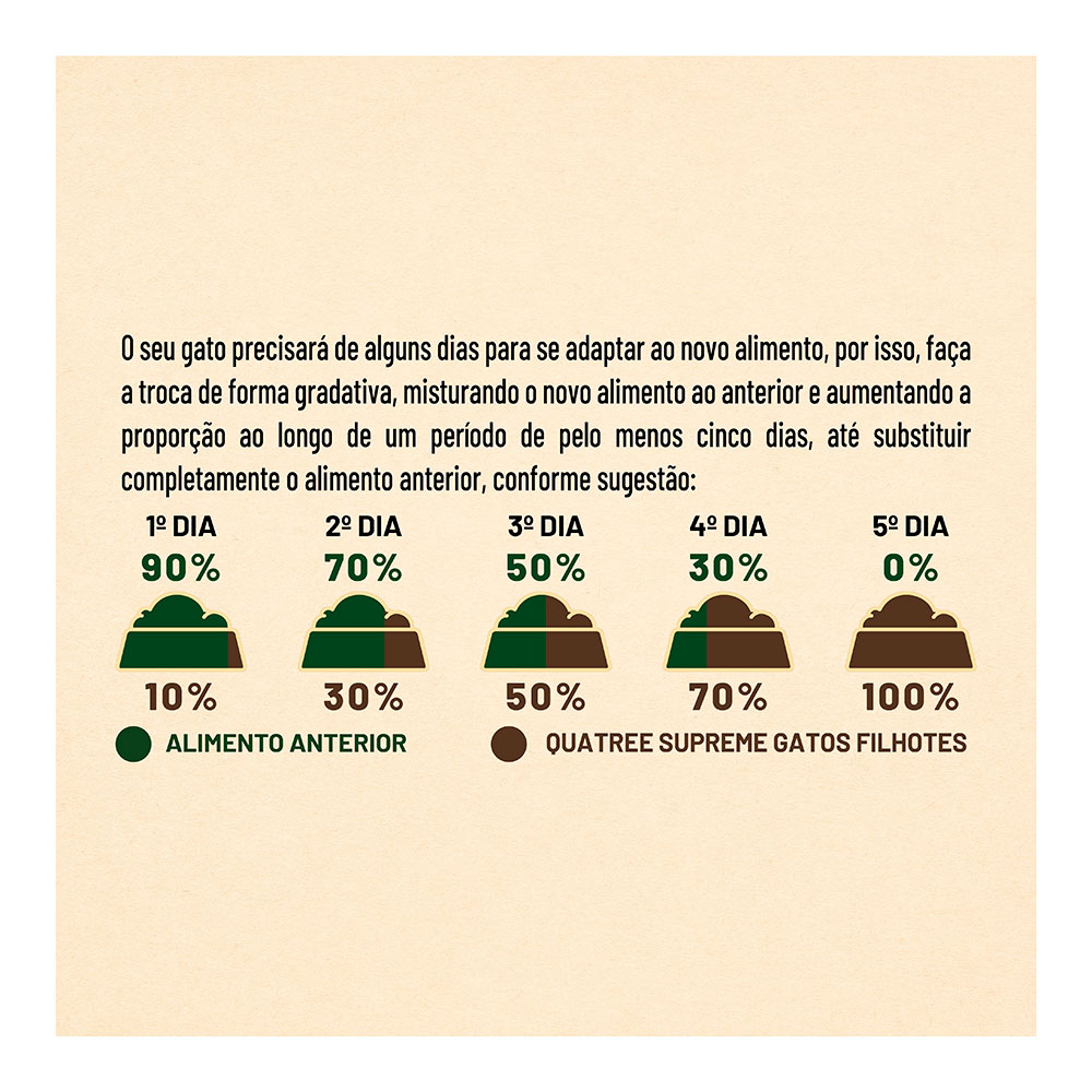 Ração Quatree Supreme Gatos Filhotes é um aAlimento Super Premium formulado com conservantes 100% naturais e livre de transgênicos, garantindo fácil digestão e absorção dos nutrientes. A combinação de proteínas selecionadas e ingredientes naturais e funcionais garante mais saúde e vitalidade para o seu gato.