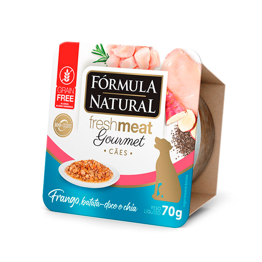 O Fresh Meat Gourmet Cães Frango, Batata Doce e Chia Fórmula Natural um alimento de alta qualidade, elaborado com carne de frango em pedaços. Contém batata doce, cenoura, salsa, chia e alecrim, que agrada aos paladares mais exigentes, é formulado para atender todas as necessidades nutricionais do seu cão.