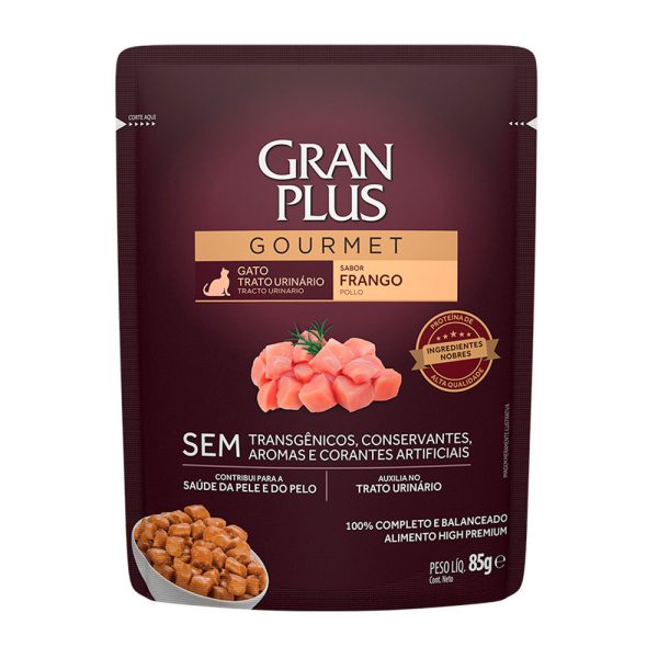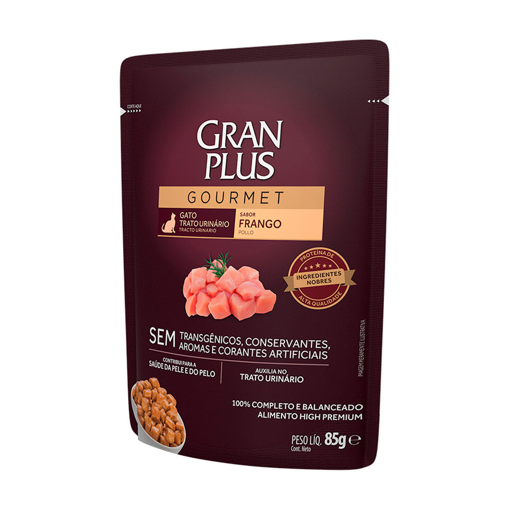 A Ração Úmida GranPlus Gourmet Gatos Trato Urinário Frango é um alimento saboroso e nutritivo, um sachê ideal para os paladares mais exigentes, sem conservantes, aromatizantes e corantes artificiais.