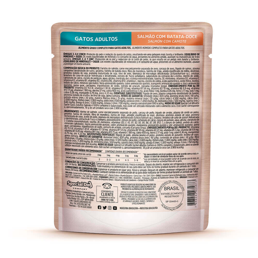 A Ração Úmida Special Cat Sachê Salmão para Gatos Adultos é um alimento Premium Especial, completo e balanceado, sem corantes e aromatizantes artificiais.