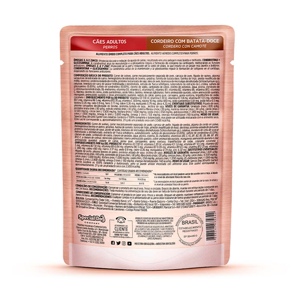 Ração Úmida Special Dog Ultralife Sachê Cães Adultos Sabor Cordeiro 100g