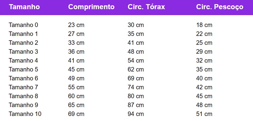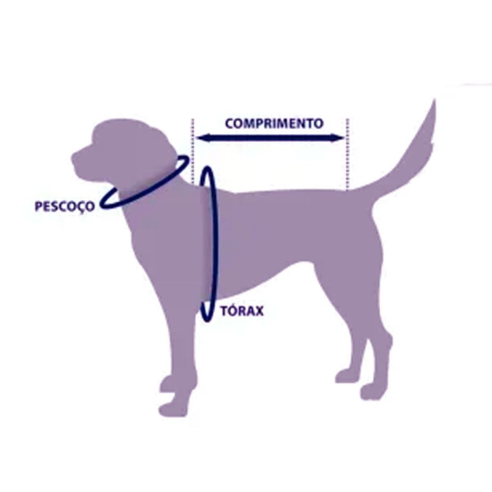 Indicada para cães e gatos de pequeno, médio ou grande porte. Verifique a tabela de medidas para melhor ajuste.