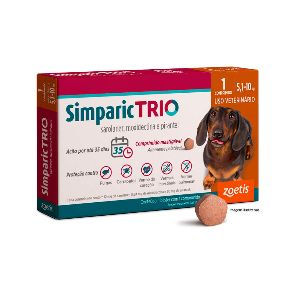 Simparic Trio 12mg Antipulgas e Carrapatos Para Cães 5,1 a 10kg 1 Comprimido